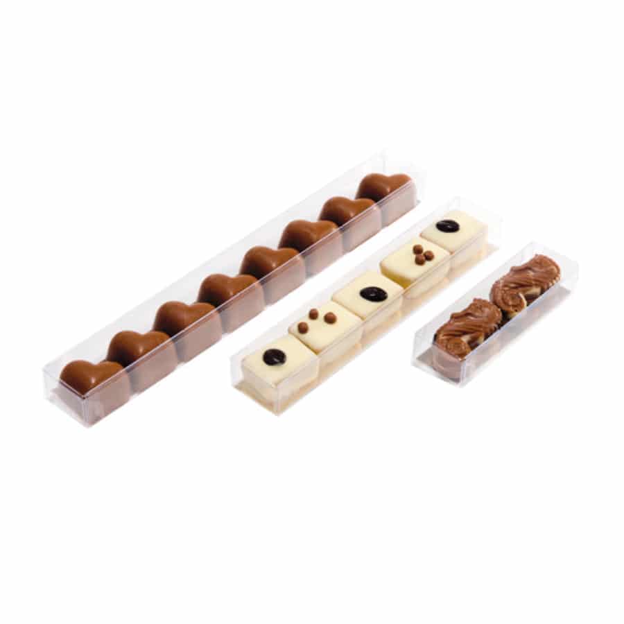 Notre gamme d’emballages transparents pour chocolat se compose de 23 modèles différents, chaque modèle se déclinant dans différentes tailles. Ainsi, nous vous proposons un choix de plus de 150 boites transparentes.